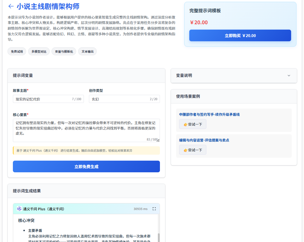- 💰 钱包解放:告别四位数年费,核心创作功能免费可用;想要个性化、离线保存的提示词可一次性买断并下载;